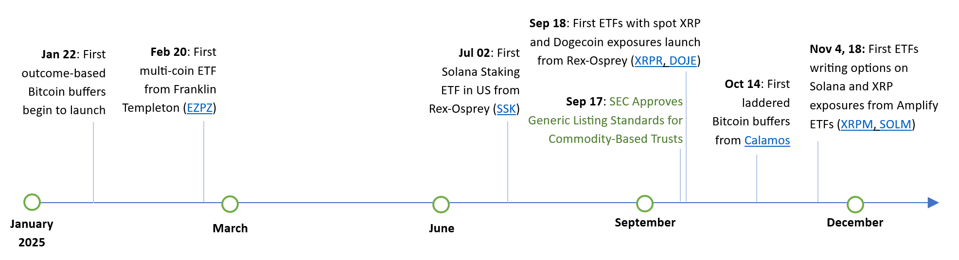 The world of digital assets never stops moving, and crypto ETP development was no exception. Following nearly a decade of advocacy to bring the first spot bitcoin ETPs to market in 2024, masses of new crypto ETP mandates in 2025 ran the gambit of physical “alt-coins”, futures, staking structures, levered, inverse, option-based income, buffers and index-tracking mandates1.
