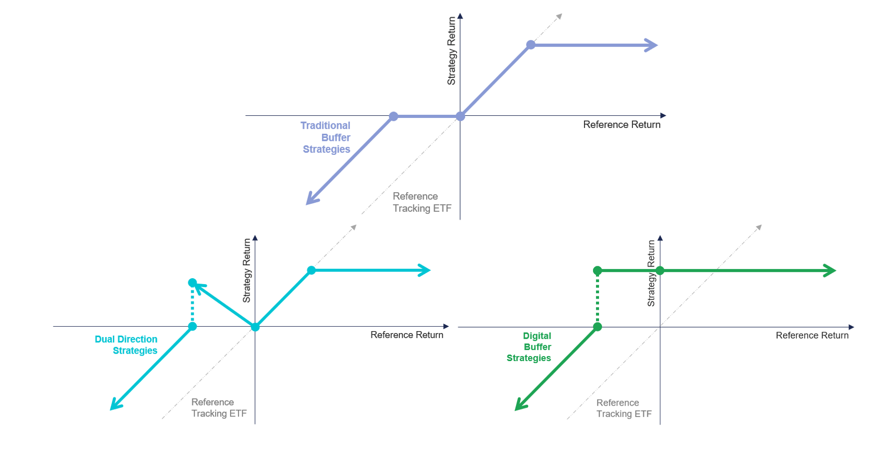 Buffered ETF managers had a busy year characterized by new entrants, new outcomes and even new ways to collateralize options, with option box spreads, in the ETF wrapper. Amidst a choppy quarter for U.S. equities, FT Vest debuted its “Digital Buffer” strategy shortly after manufacturing “Dual Directional” product, introducing yet another variation on traditional buffers to an expansive product lineup.