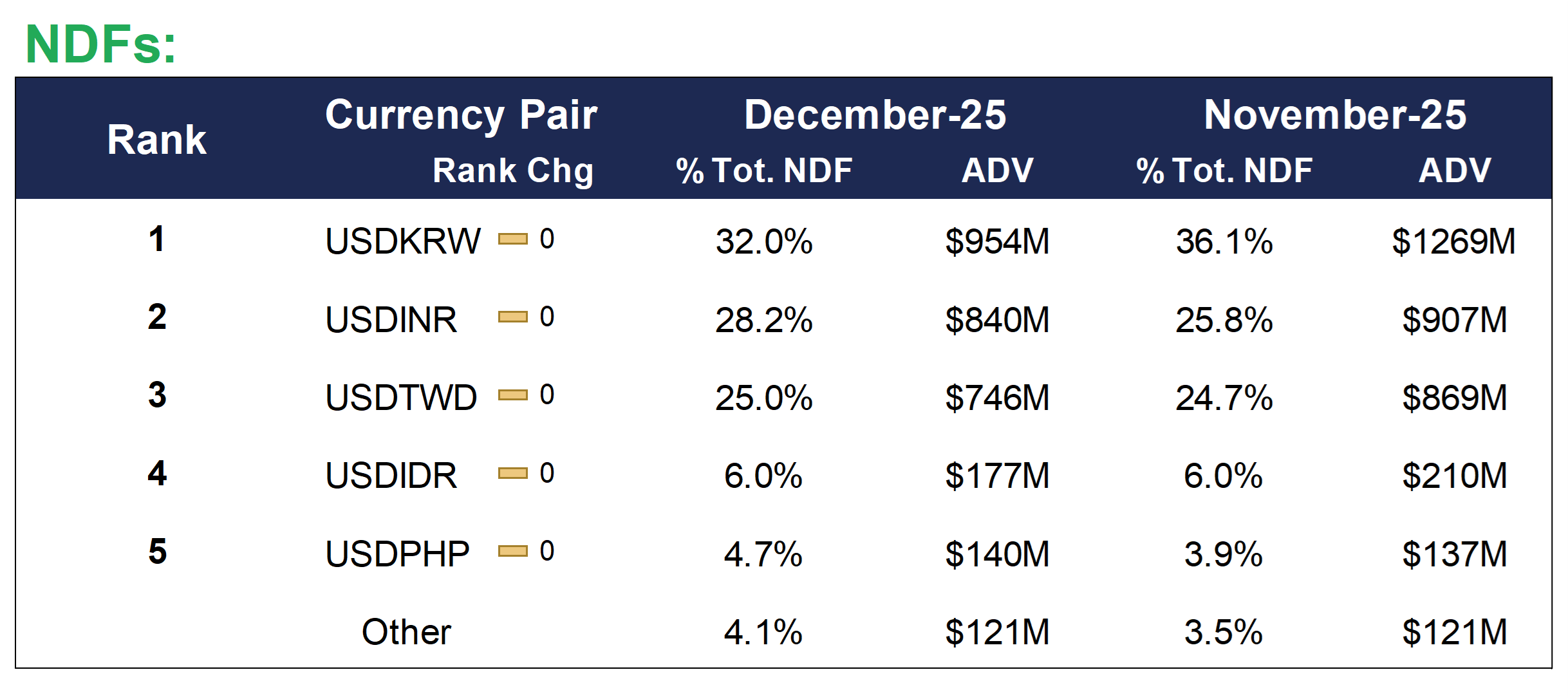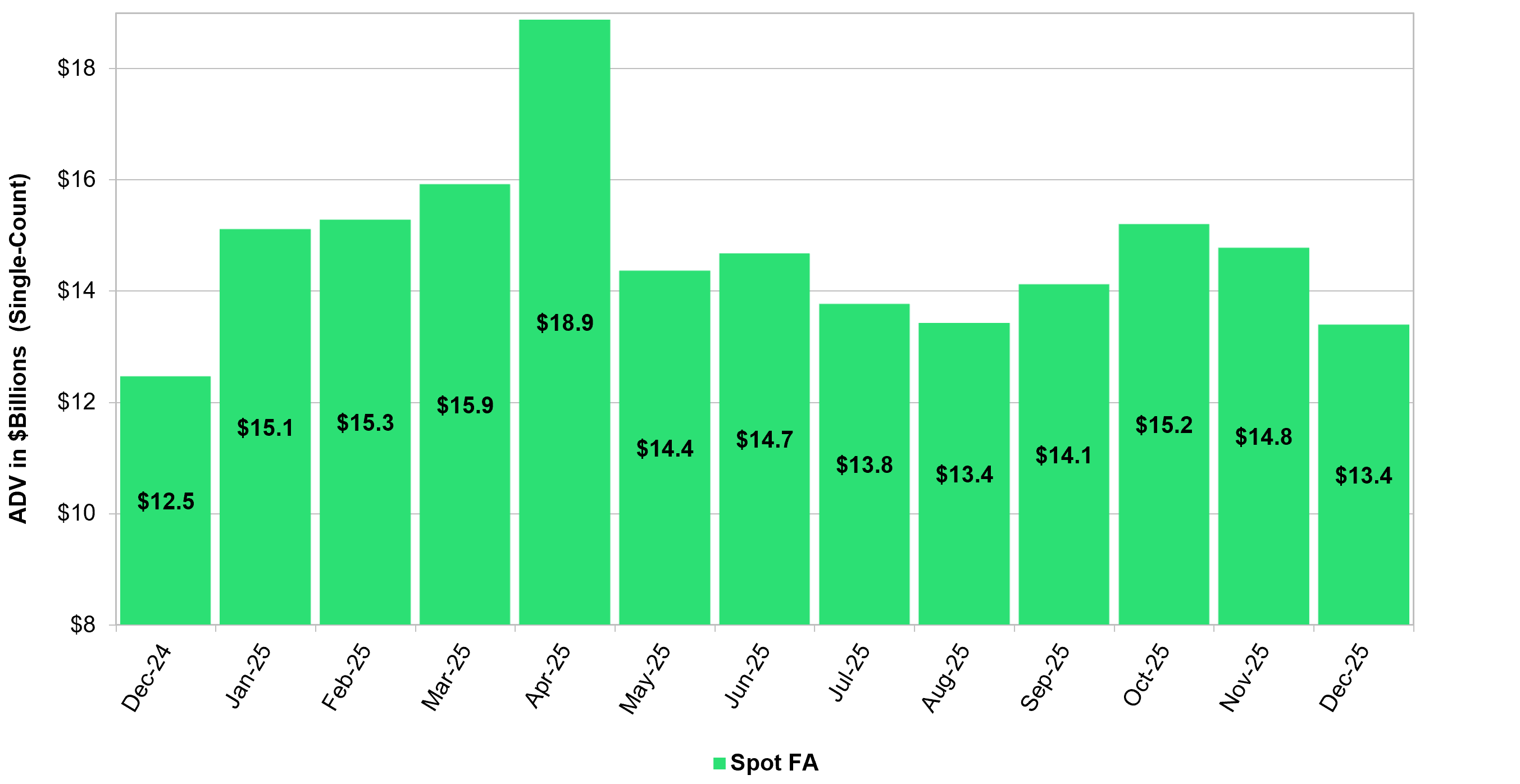 All volume data comparing Cboe FX with other venues has been normalized to account for different counting methodologies. Average Daily Volume (ADV) reported by each platform will not be based on the same number of trading days for a given month due to observed national or bank holidays unique to the jurisdiction in which a given platform is located. Cboe FX counts each day that a platform is open as a trading day.