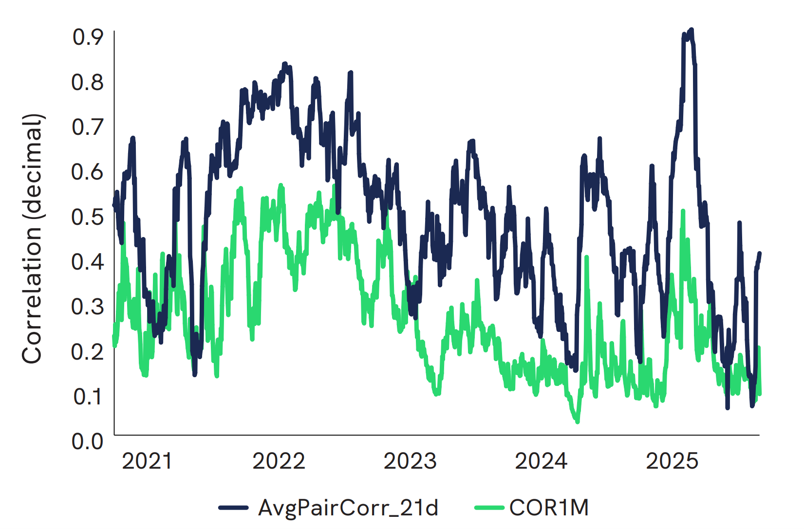 Average Pairwise Correlation uses a 21-day rolling window