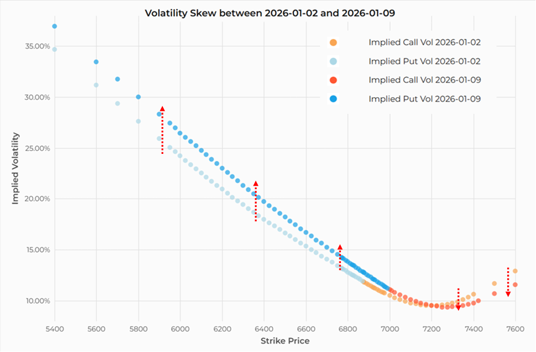 Chart: SPX 1M Implied Vol Surface (Jan 9th vs. Jan 2nd)