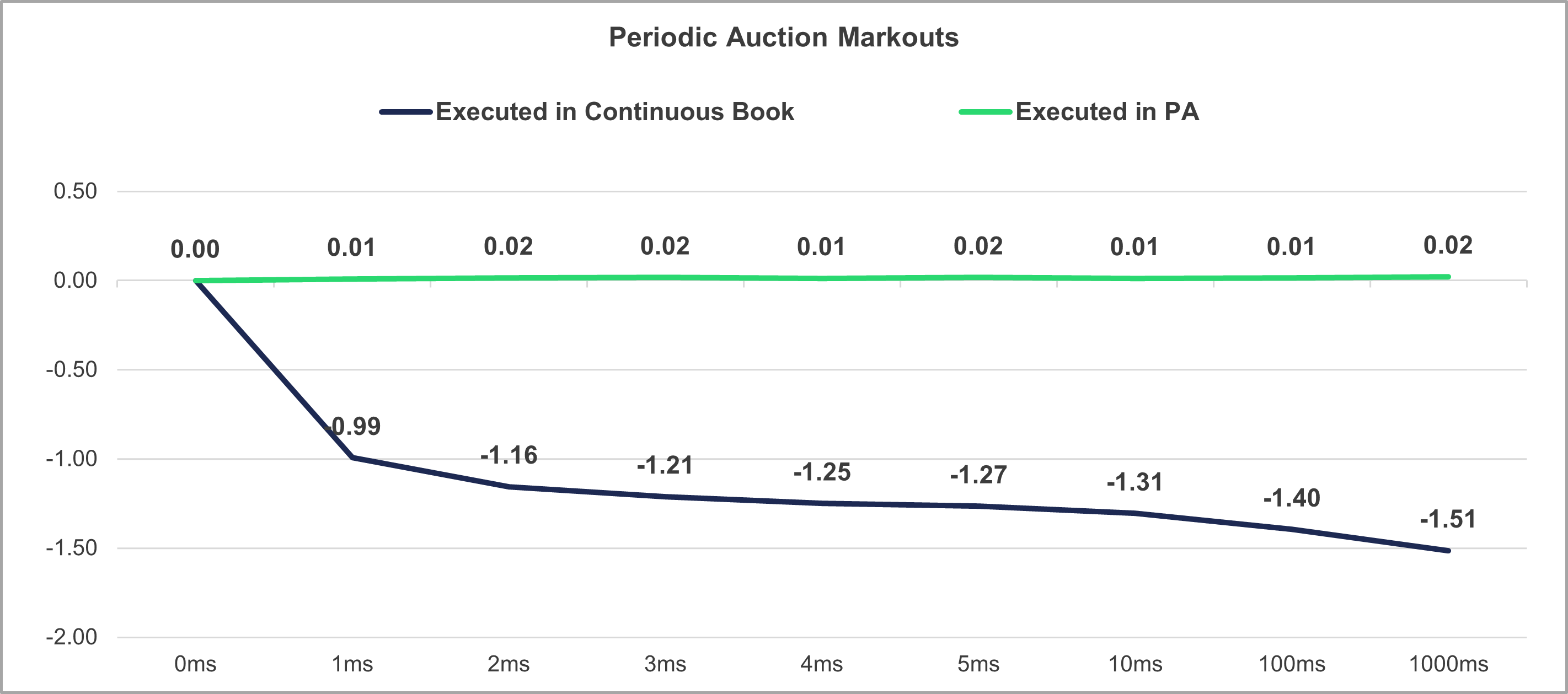 - Periodic Auctions combines the regulatory certainty of a lit exchange with the execution quality protections typically associated with off-exchange trading. When two opposing Periodic Auction orders match within the spread the auctions are triggered on-demand to run for a randomized period of up to 100 milliseconds and prioritize size and price over speed. This creates a protected environment that significantly reduces market impact.