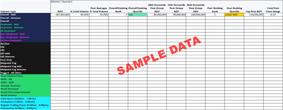 Cboe’s improved U.S. Member Usage and Peer Ranking Reports provide member firms with deeper insight into their use of both standard industry order types and Cboe’s premium order types. In addition to ranking a firm’s activity relative to peers and the broader membership, the report delivers meaningful performance benchmarking. These peer comparisons highlight where a member is excelling and where there may be opportunities for improvement relative to similar firms.